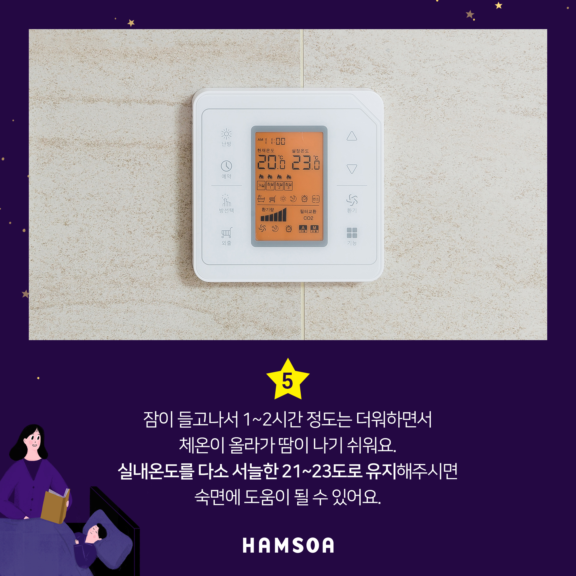 숙면을 위한 생활관리법 #5. 실내 온도는 서늘하게 21-23도로 유지해주세요.