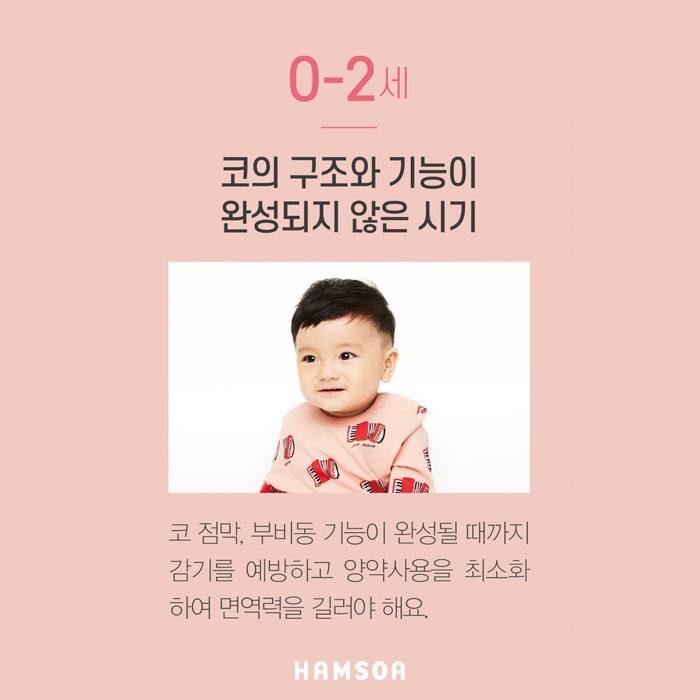 코 점막기능과 면역체계가 성인 수준의 50%정도로 발달합니다.