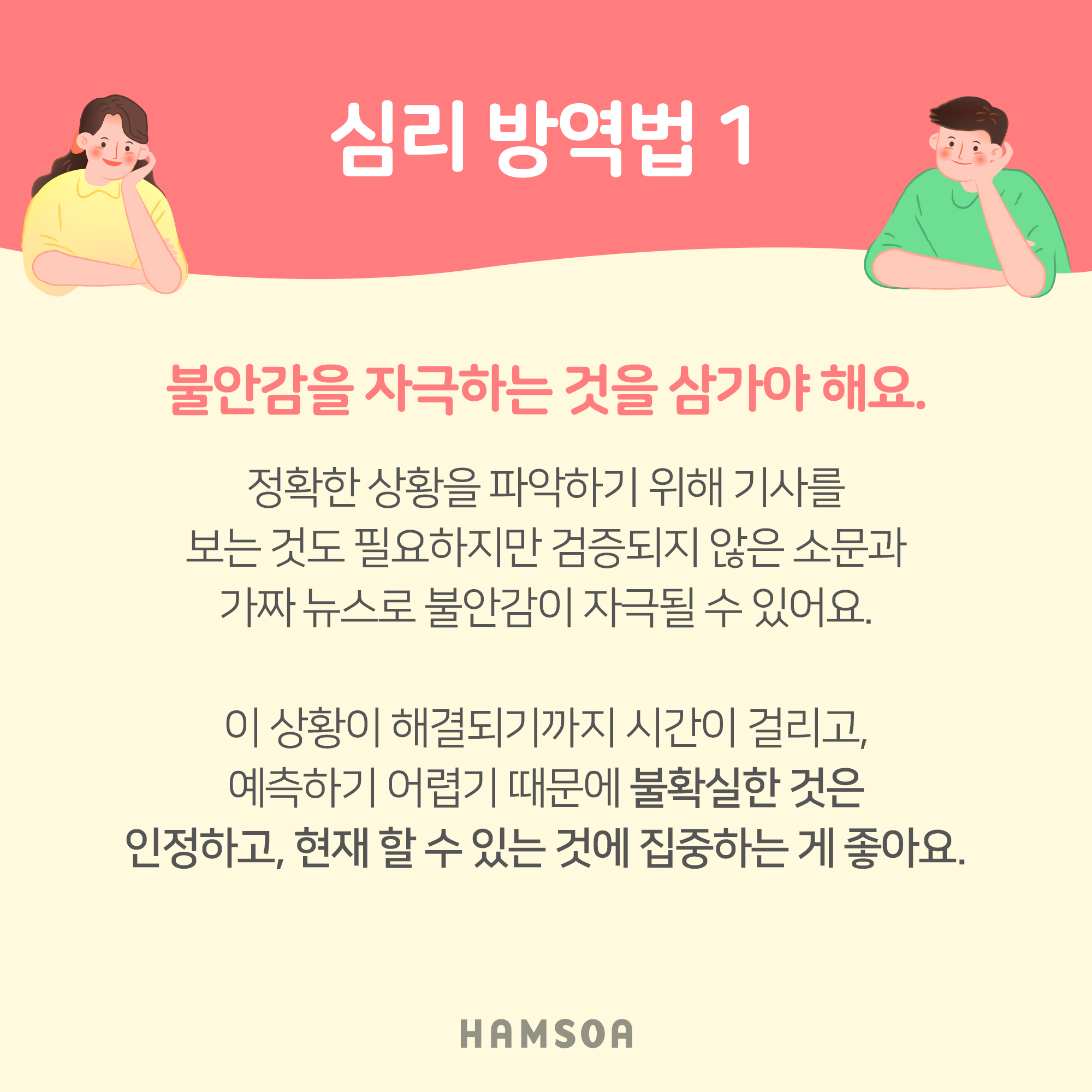 심리방역법 #1. 불안감을 자극하는 것을 삼가야 합니다.