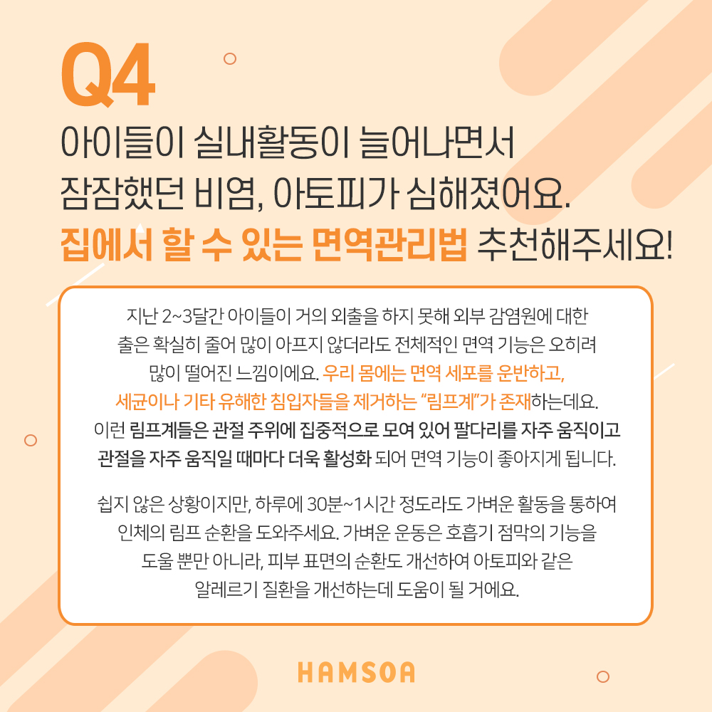Q4. 집에서도 할 수 있는 면역관리법 알려주세요.