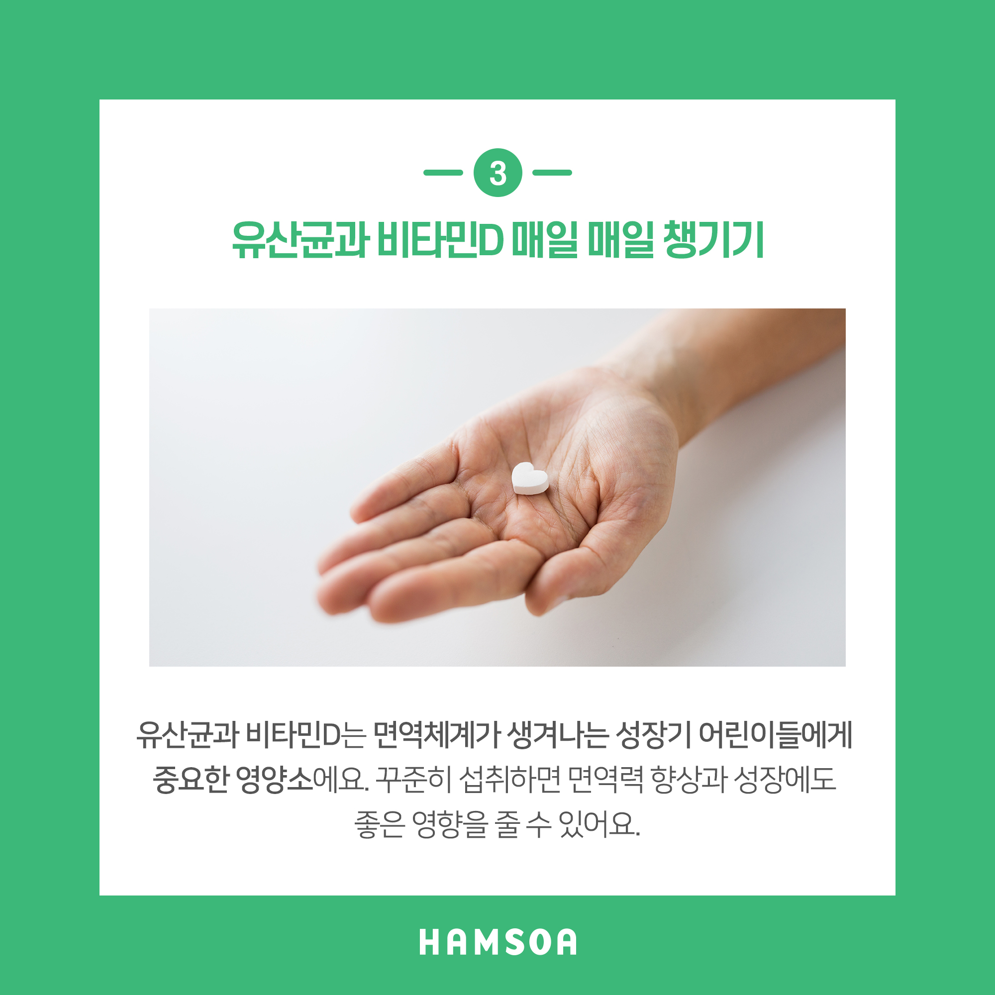 3.유산균과 비타민D 매일 매일 챙겨주세요.