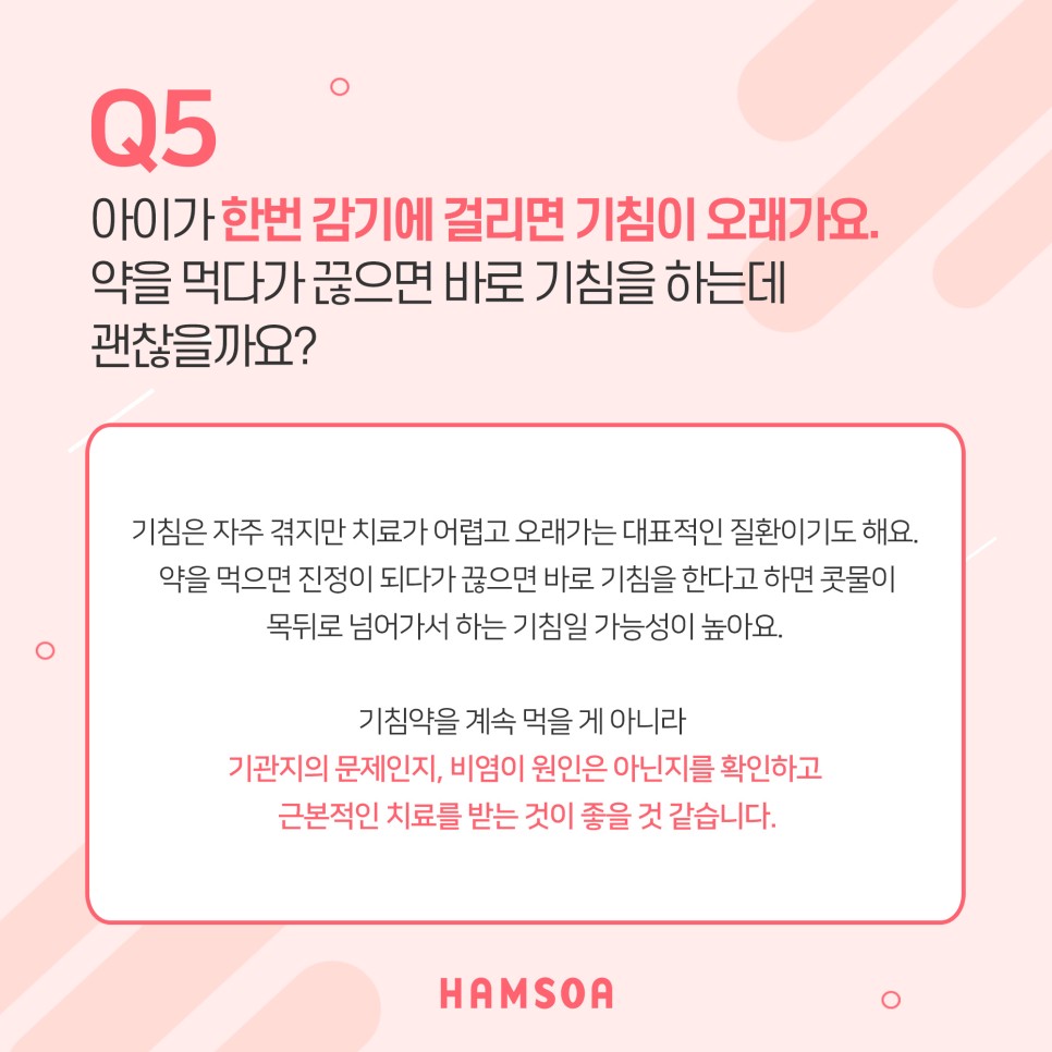 Q5. 아이가 한번 감기에 걸리면 기침이 오래가요.