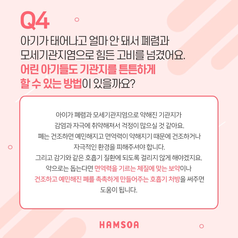 Q4. 아이가 태어나고 얼마 안 돼서폐렴과 모세기관지염으로 힘든 고비를 넘겼어요.