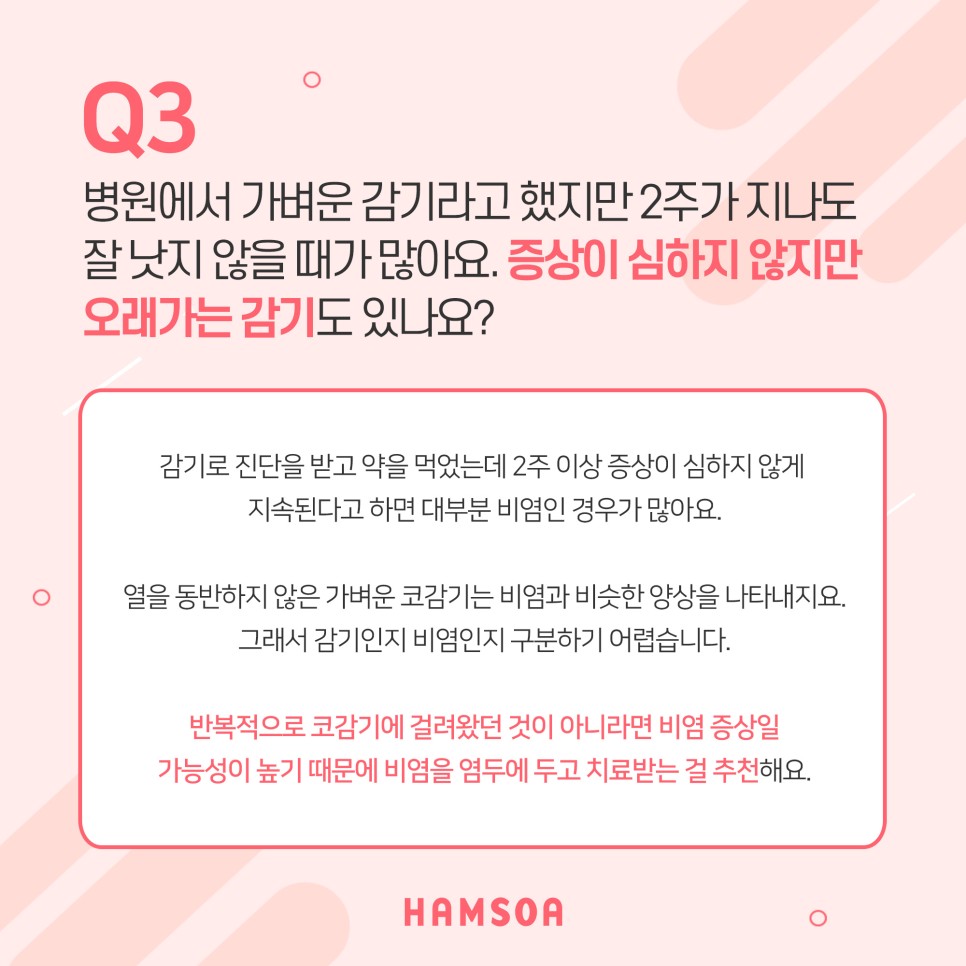 Q3. 병원에서 가벼운 감기라고 했지만 2주가 지나도 잘 낫지 않을 때가 많아요.