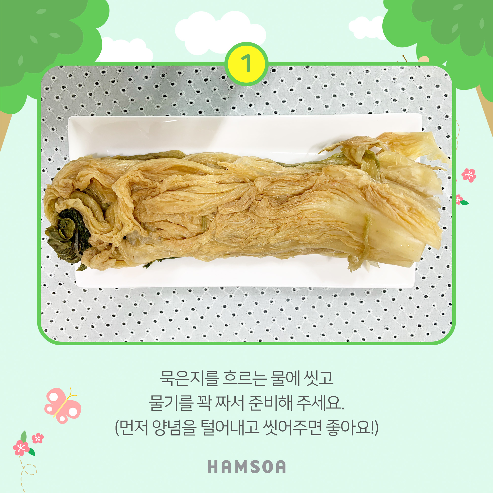 1.묵은지를 흐르는 물에 씻고 물기를 꽉 짜서 준비해 주세요.