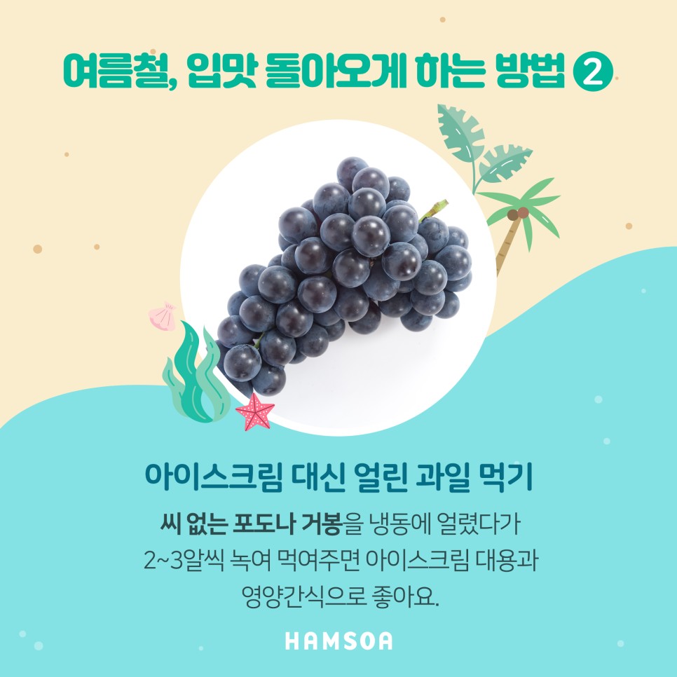 씨 없는 포도나 거봉을 냉동에 얼렸다가 2~3알씩 녹여 먹여주면