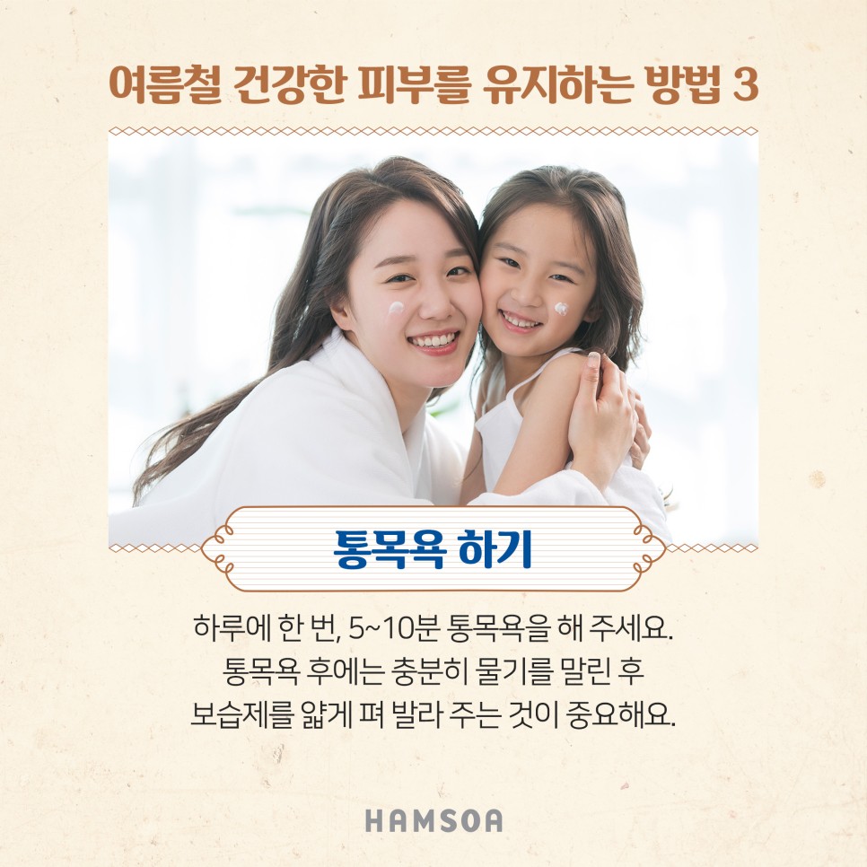 통목욕 후에는 충분히 물기를 말린 후 보습제를 얇게 펴 발라 주는 것이 중요합니다.