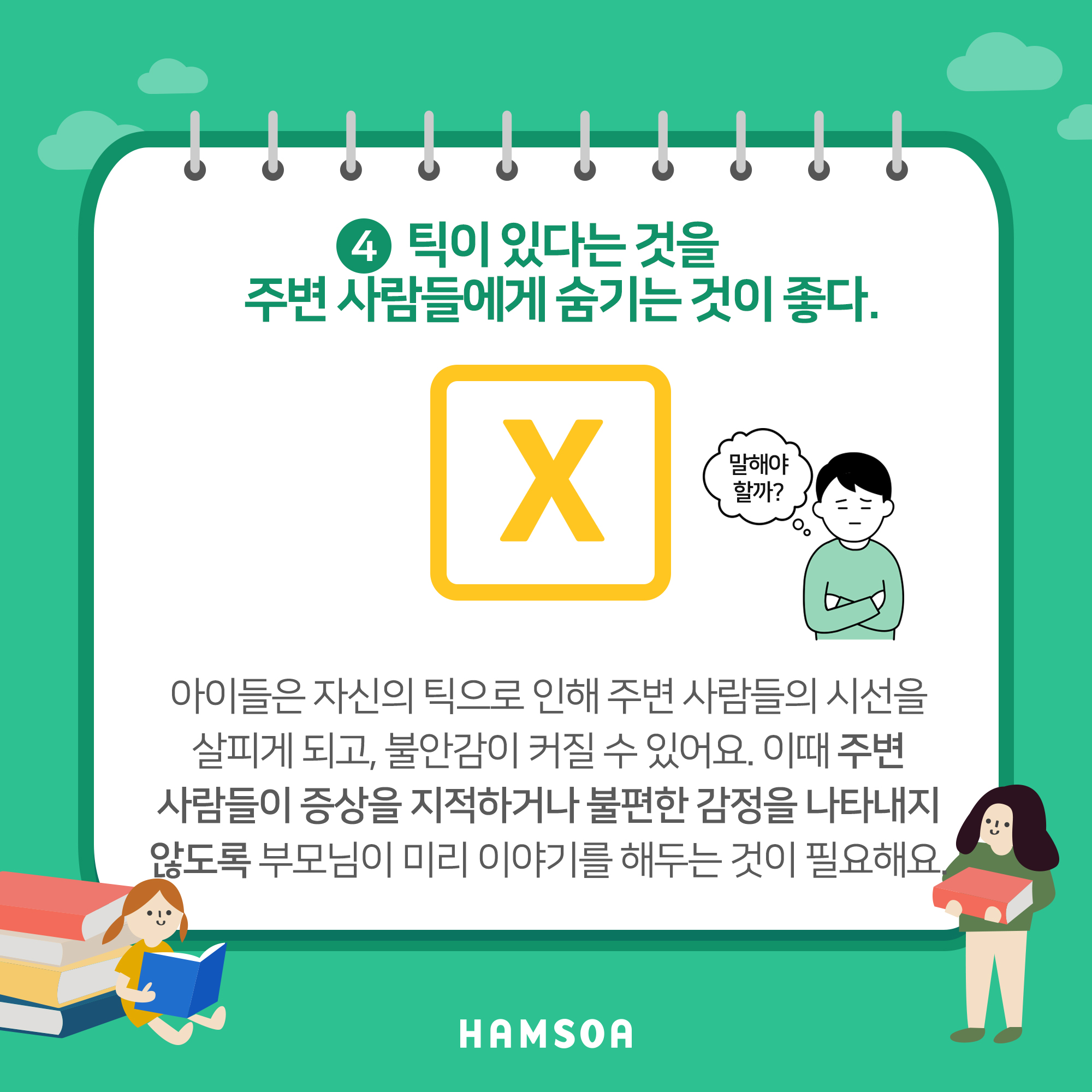 4. 틱이 있다는 것을 주변 사람들에게 숨기는 것이 좋다.