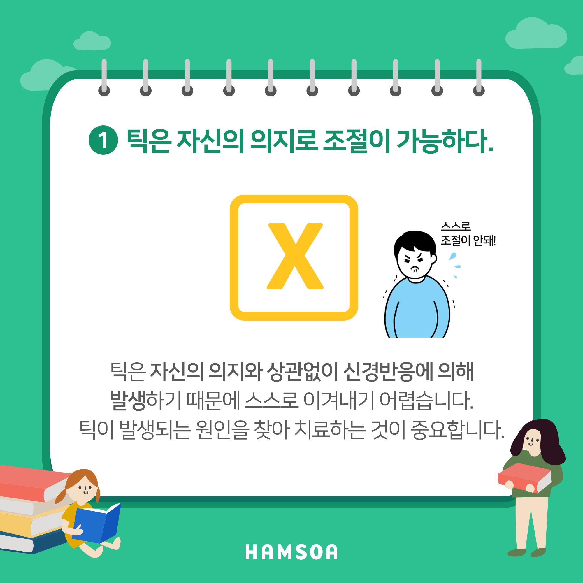 틱은 자신의 의지와 상관없이 신경 반응에 의해 발생하기 때문에 스스로 이겨내기 어렵습니다.