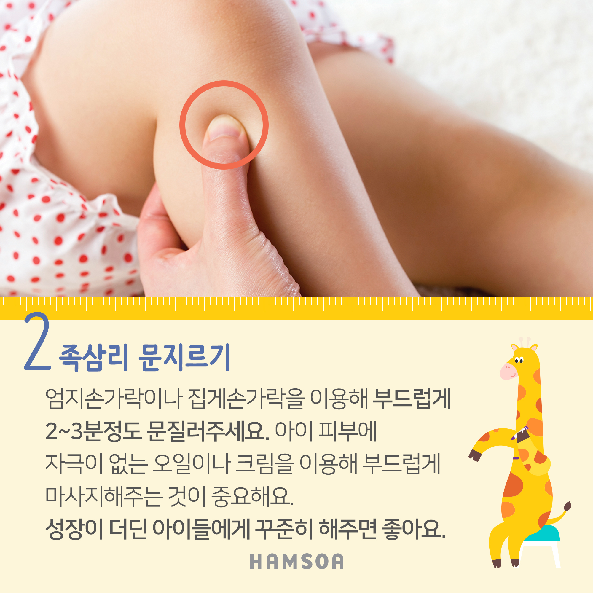 다리가 마르고 힘이 없는 아이에게 좋은 마사지입니다.