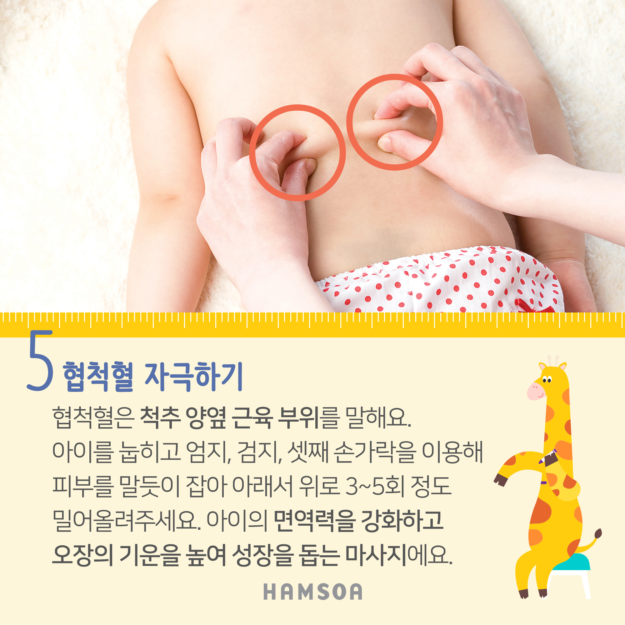 오장의 기운을 높여 성장을 돕는 마사지입니다.