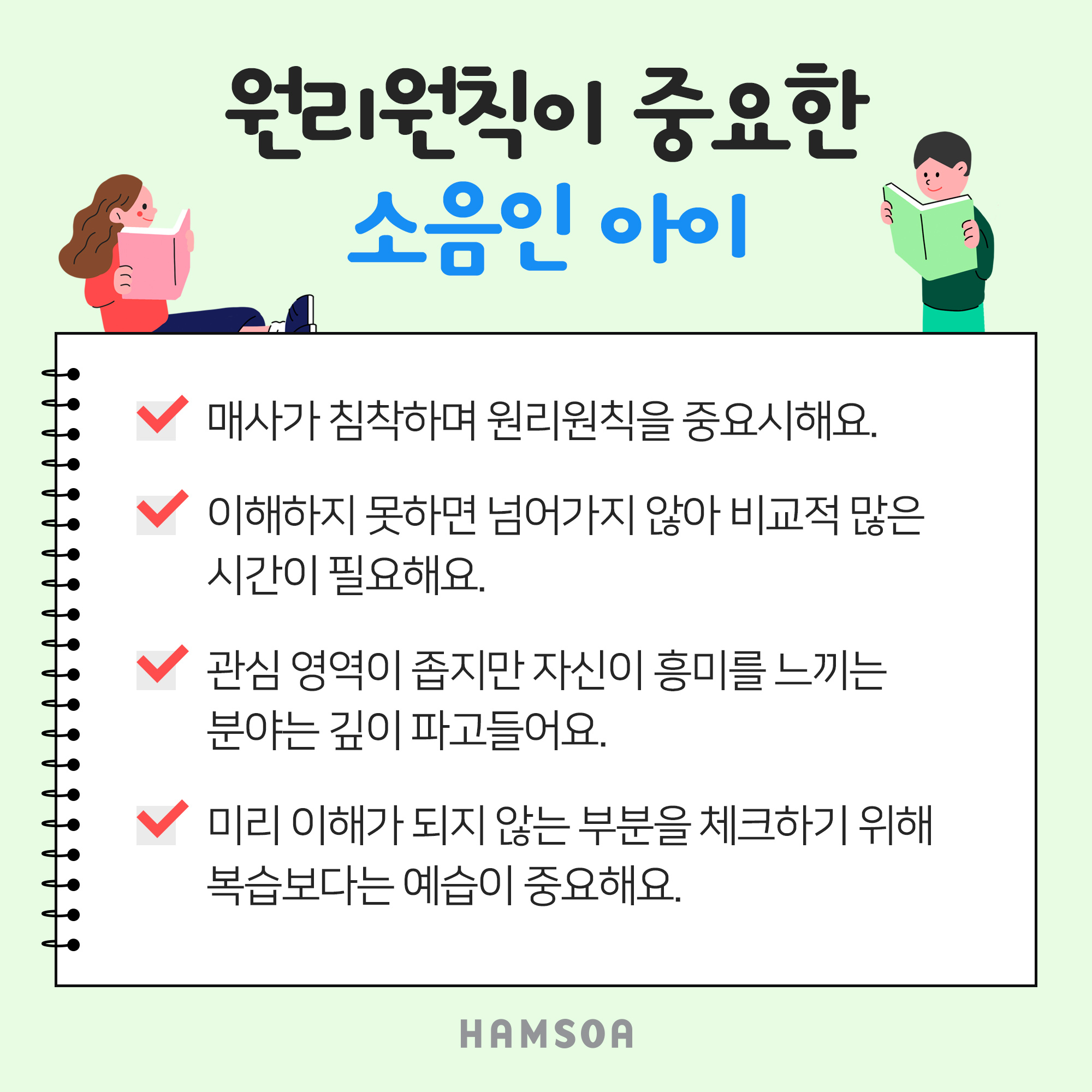 - 집중력과 순발력이 뛰어나 짧은 시간 대비 학습효과가 큰 편입니다.