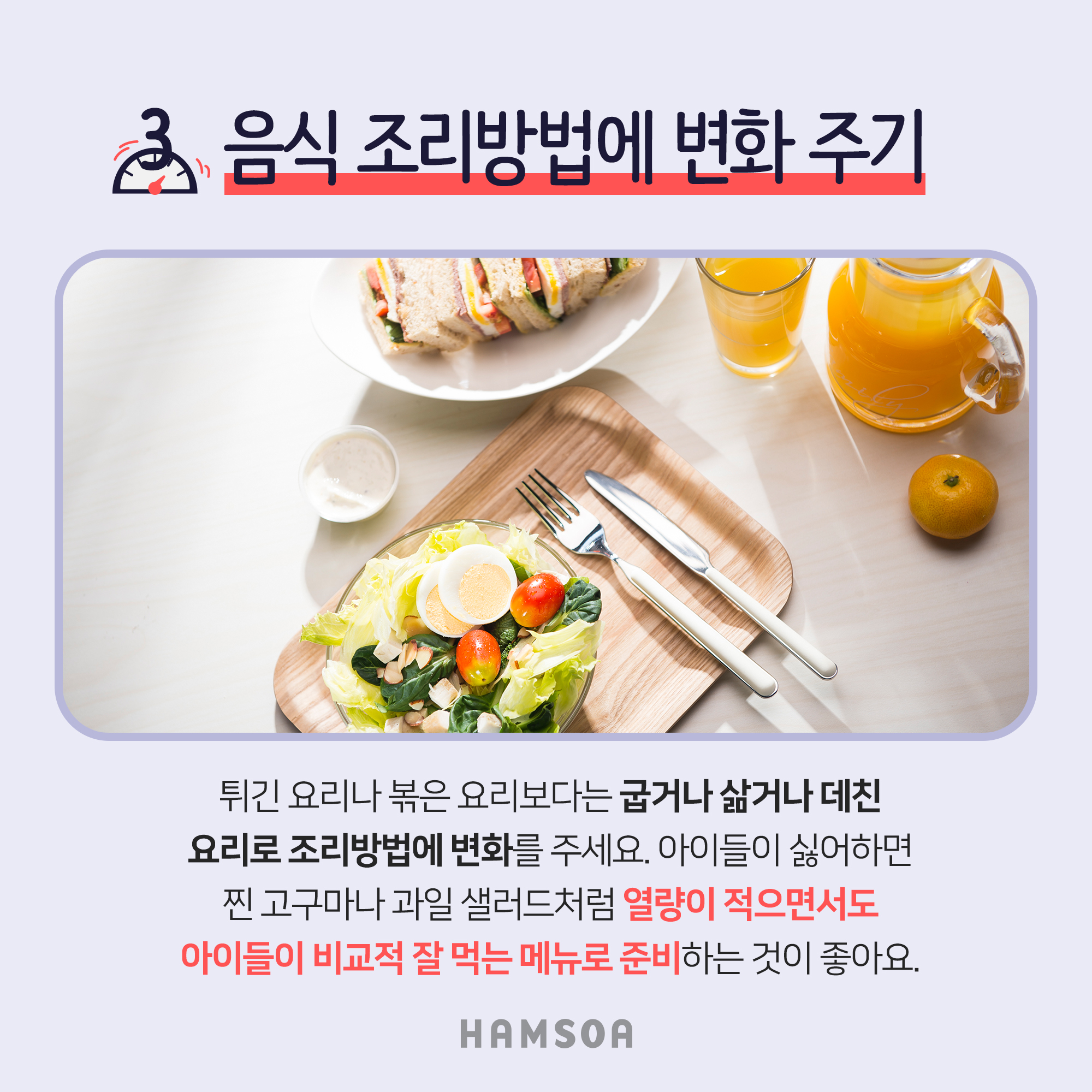 비교적 잘 먹는 메뉴로 준비하는 것이 좋습니다.