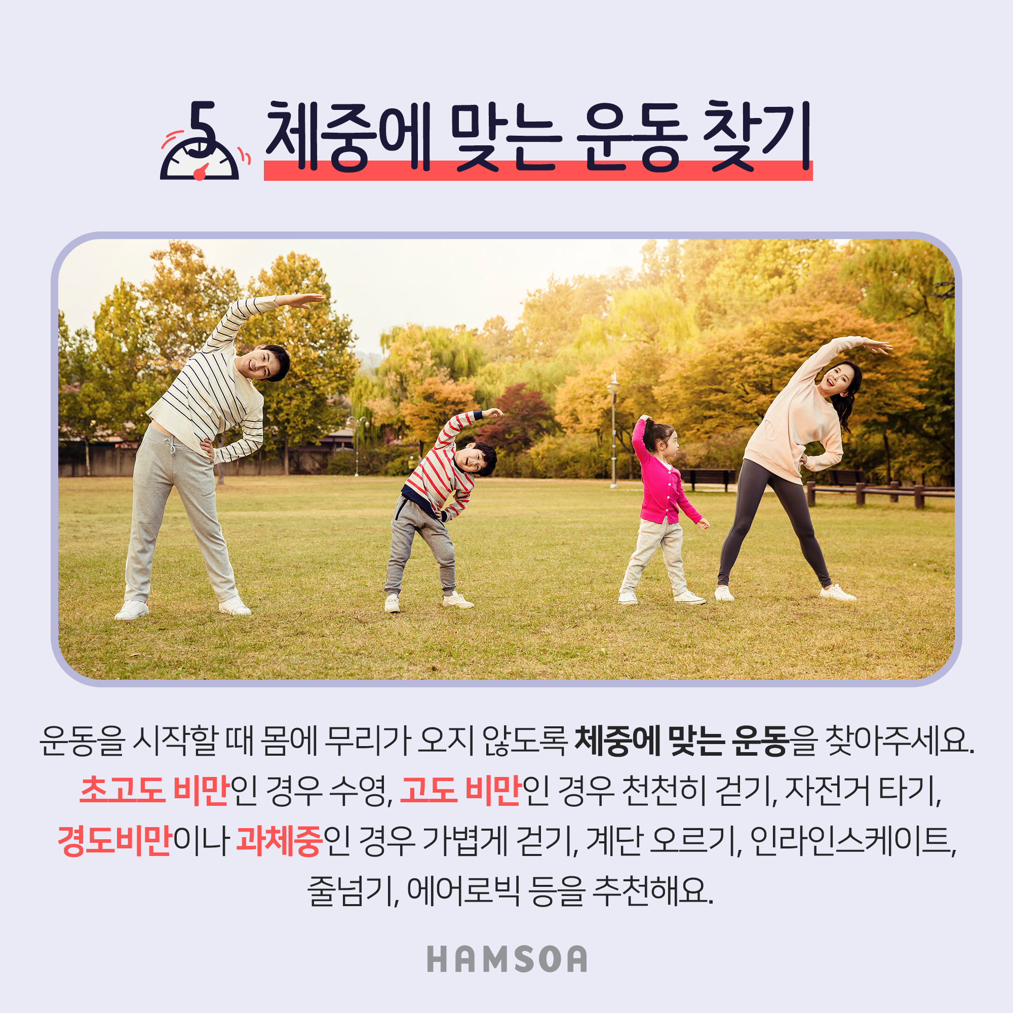 체중에 맞는 운동을 찾는 것이 중요합니다.