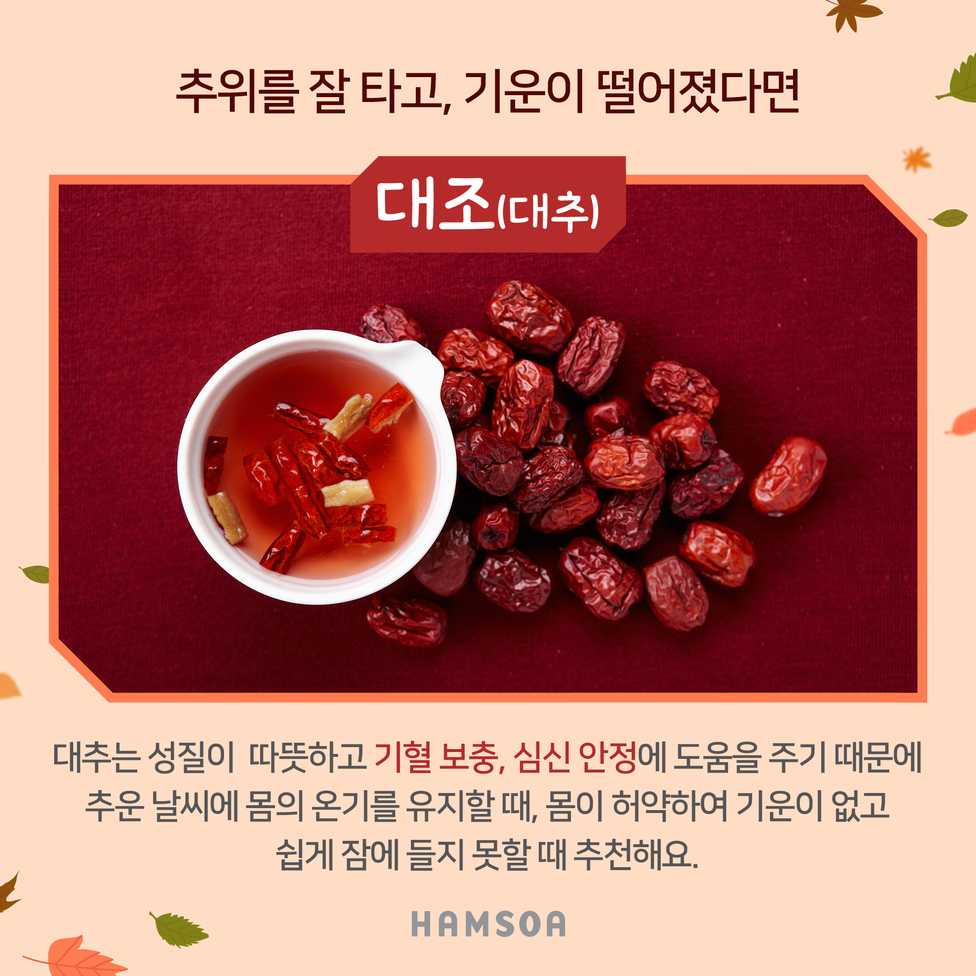 대추는 성질이 따뜻하고 기혈 보충, 심신안정에