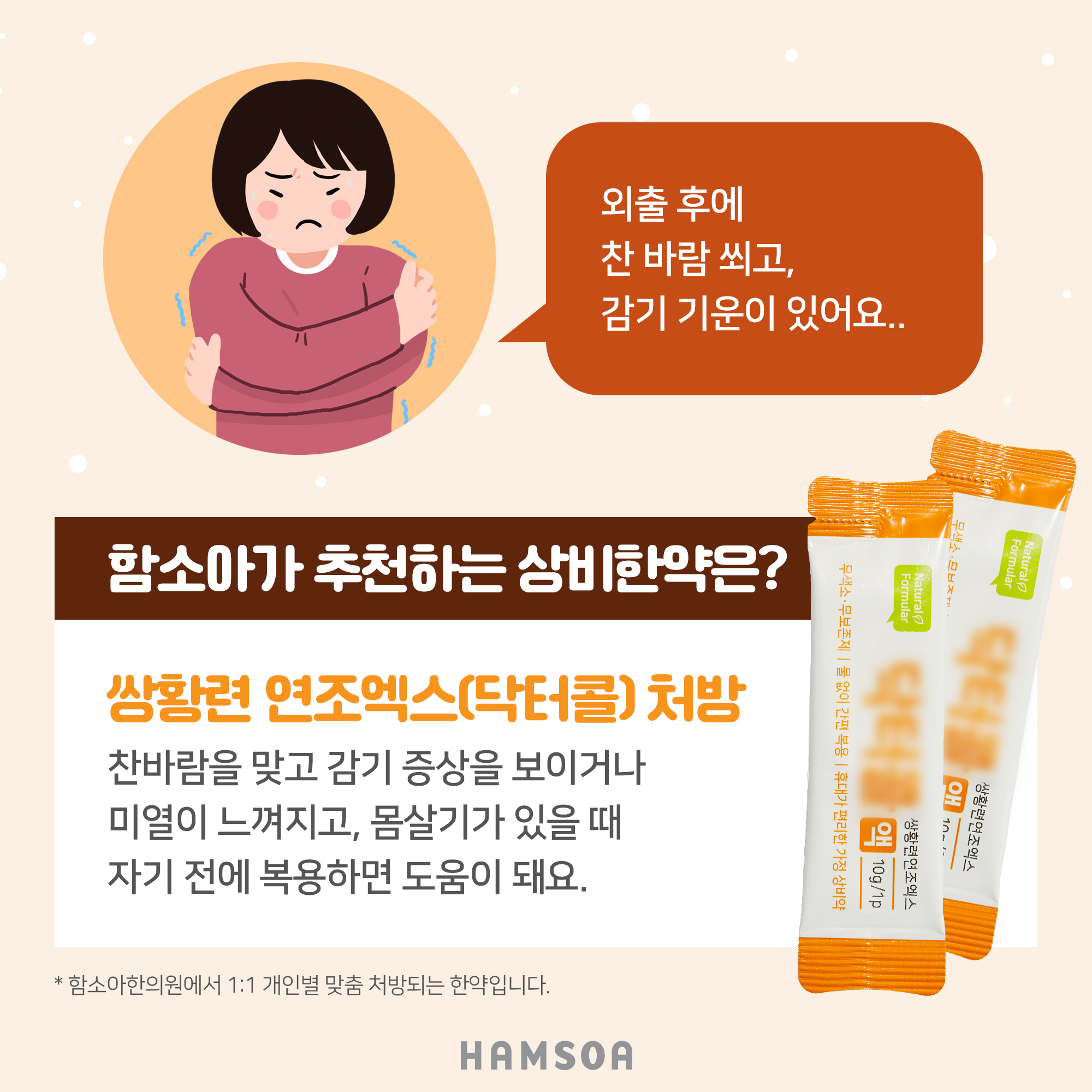 " 외출 후에 찬 바람을 쐬고, 감기 기운이 있어요 "