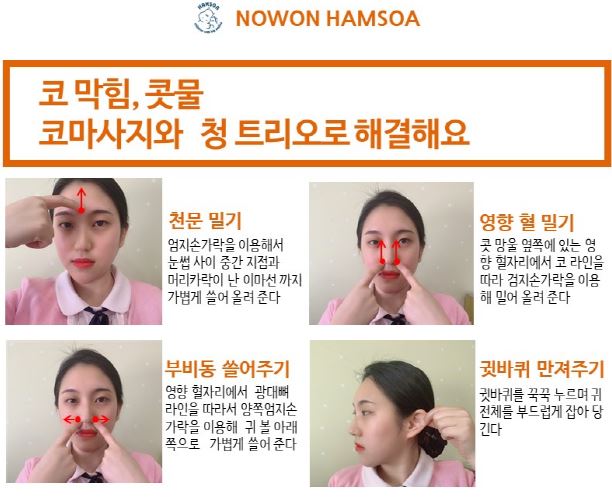 4. 코 주변 마사지를 자주 해주세요. (아래 사진 참고해서 해보심 좋겠네요^^)