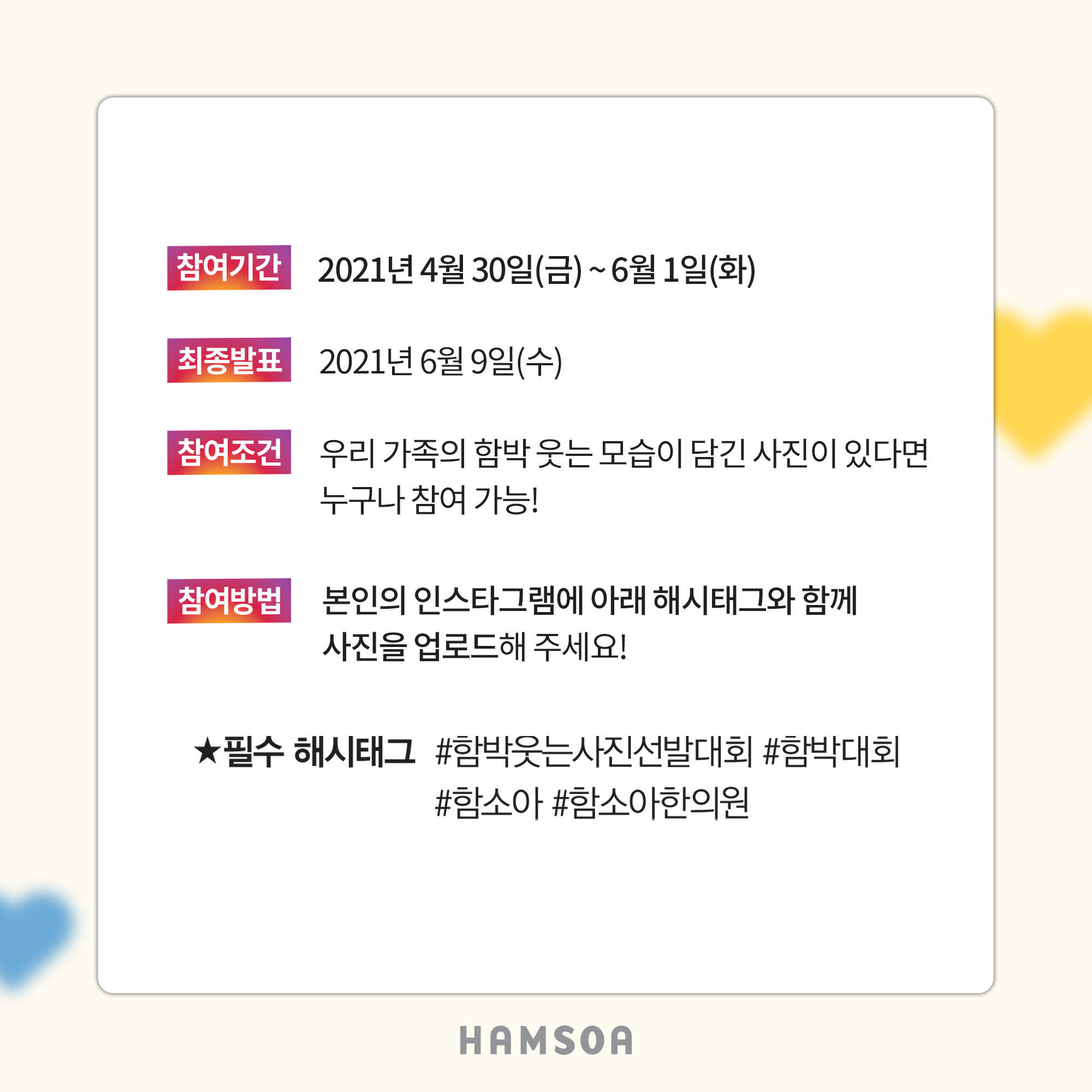 작년까지만해도 함소아 어플에서 참여 가능했는데, 이번에는 인스타그램에 해시태그만 잘 달면 되니 더욱 간편해졌어요!!