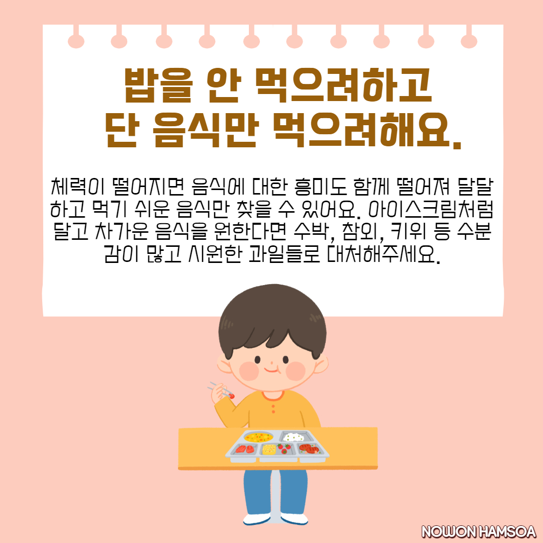 여름만되면 입맛없어하고, 자꾸 누워만 있으려고하고, 짜증도 늘어나고 하는 아이들이 있어요.