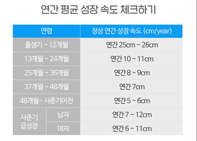 나이때 별로 연간 평균 성장 속도를 확인해서 주기적으로 체크가 필요합니다