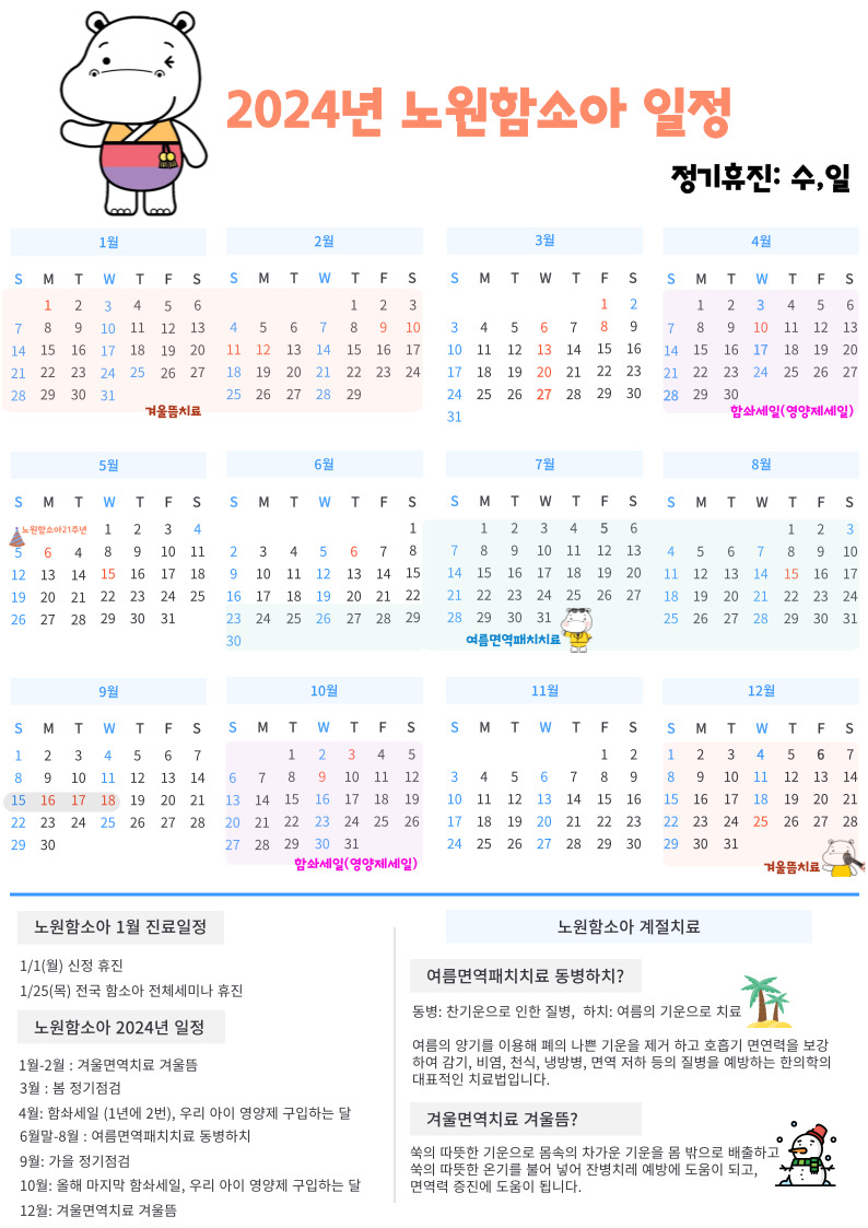 2024년 노원함소아의 대략적인 일정들을 공유드립니다 :)