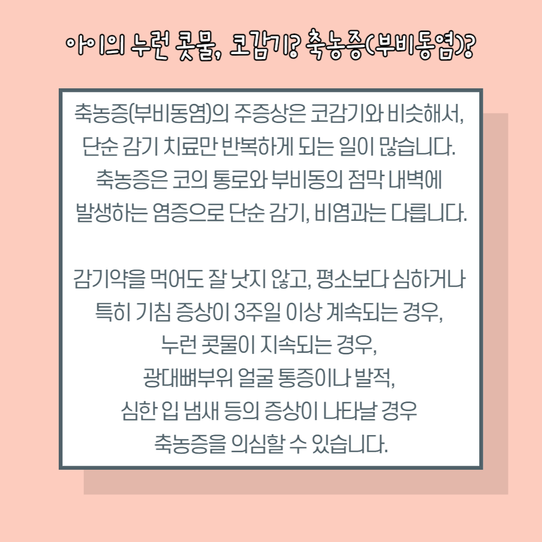 아이의 축농증(부비동염) 치료 어른과 달라야합니다.