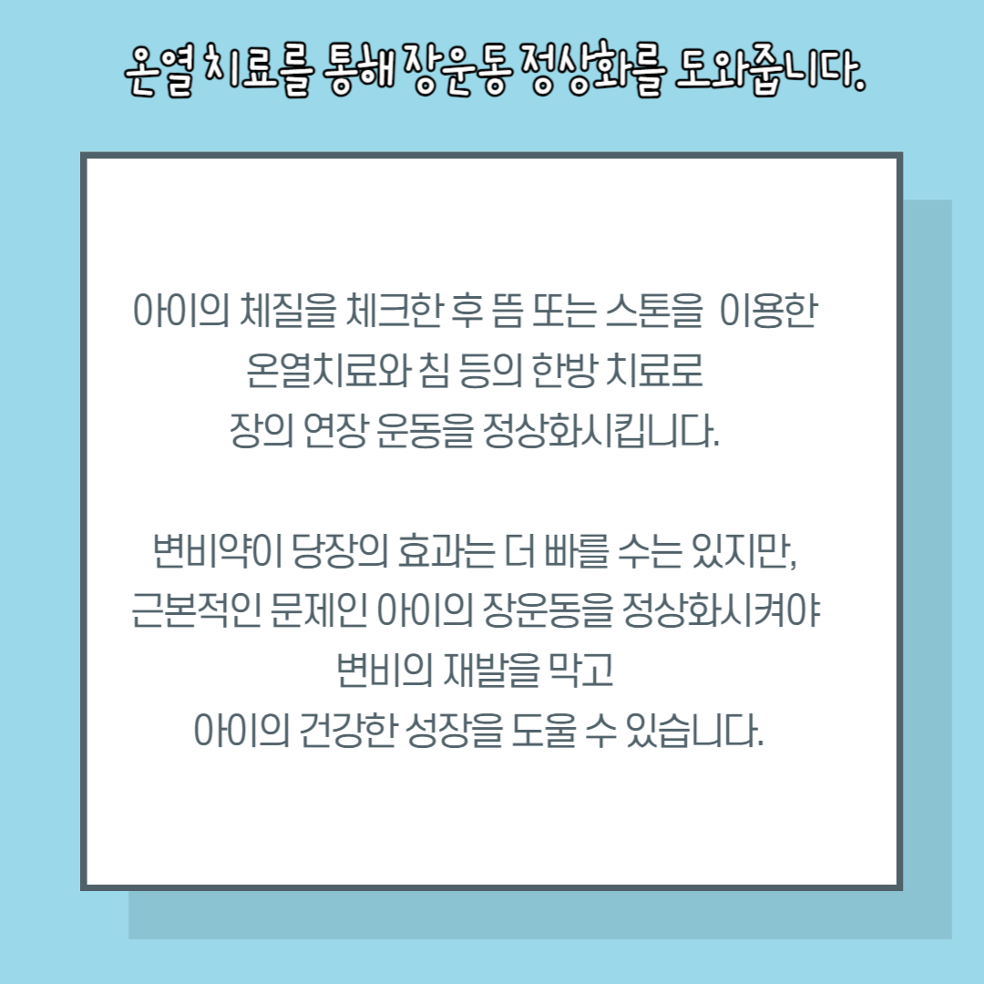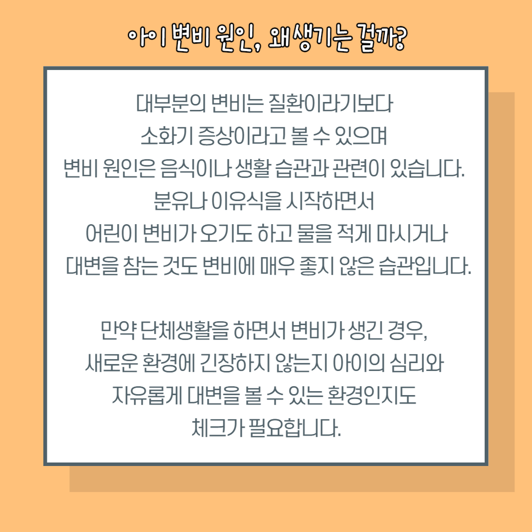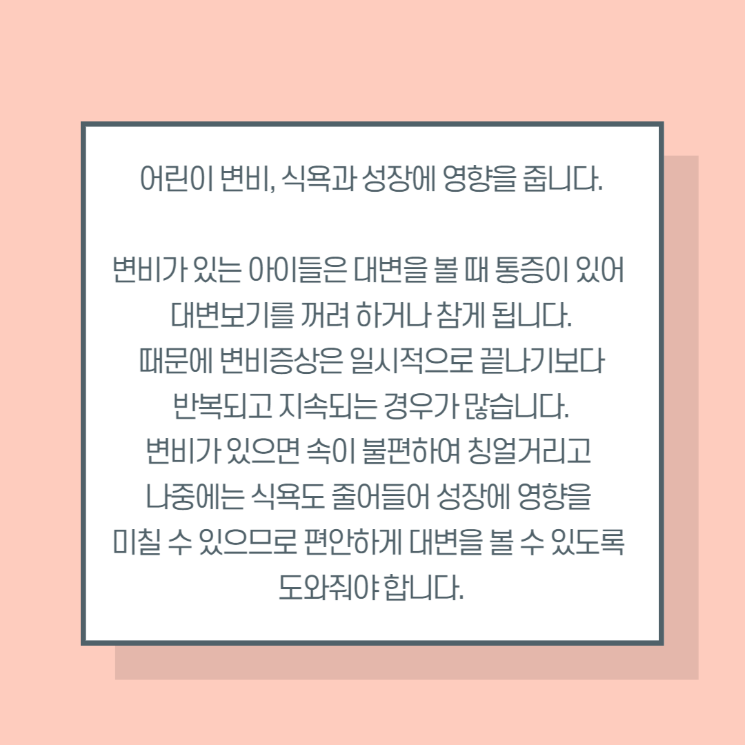 변비는 지속적으로 진행되는 경우가 많아 아이변비 초기에 관리가 중요합니다.