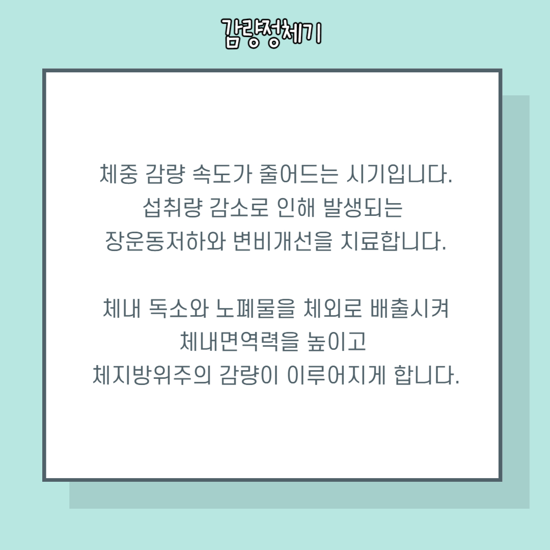 * 치료 프로그램은 개인 체질에 따라 부작용이 발생할 수 있으니 주치의 한의사 진료 및 상담 후 진행이 필요합니다.