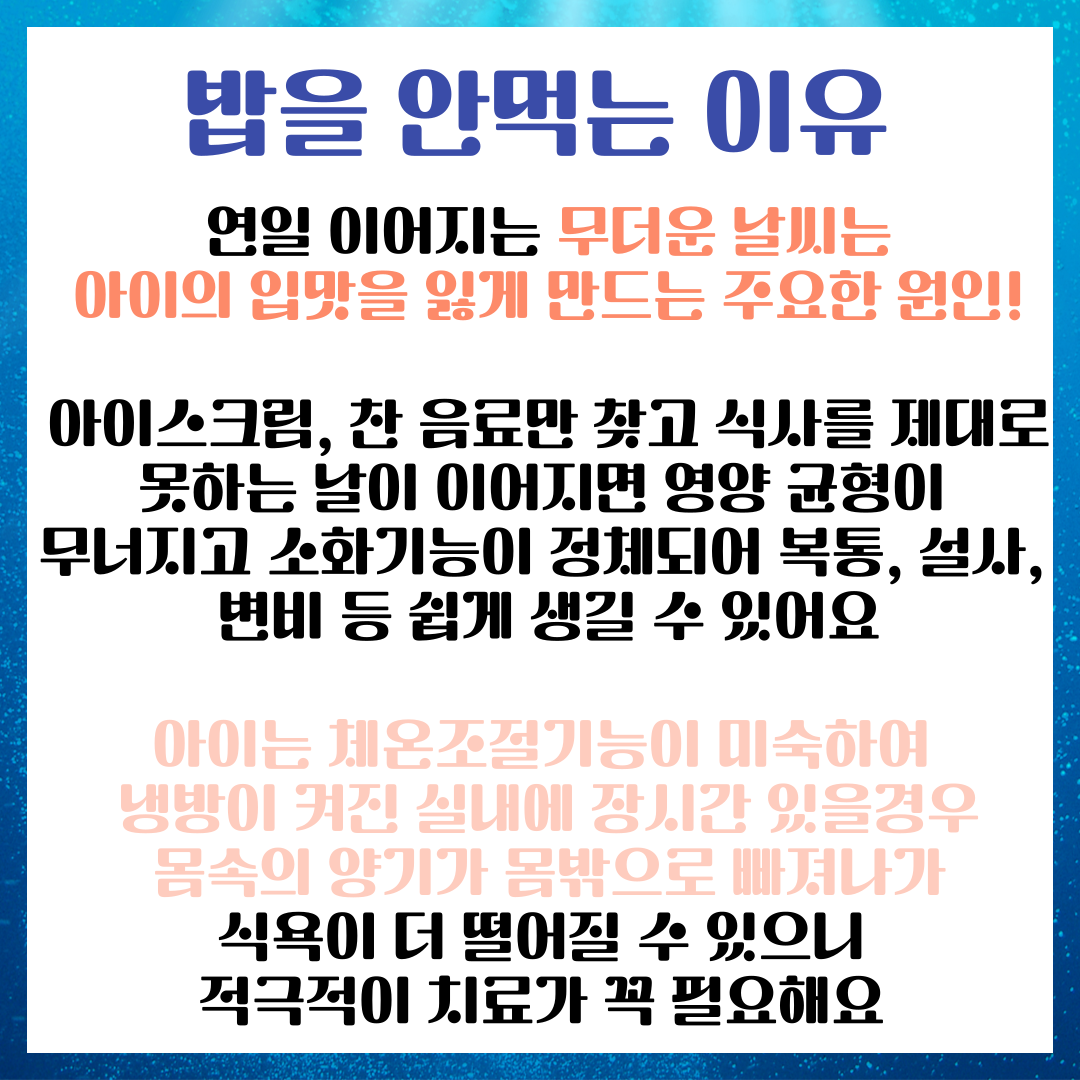 잠을 못자고 땀 흘리고 밥 못먹어 여름이 힘든 아이를 위한 여름보약, 쿨보약