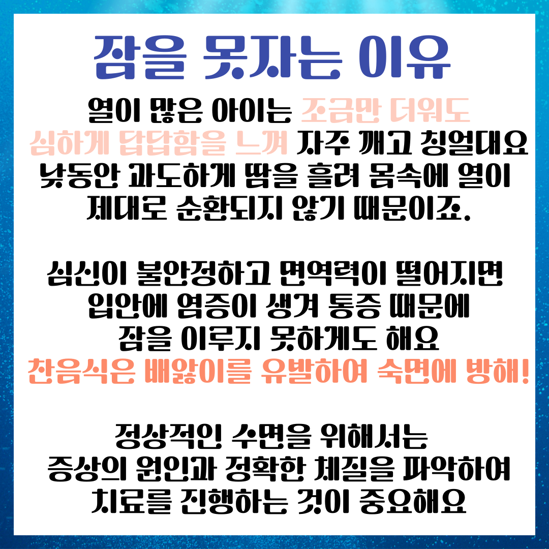 잠을 못자고 땀 흘리고 밥 못먹어 여름이 힘든 아이를 위한 여름보약, 쿨보약