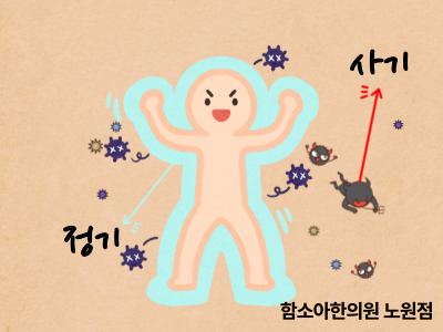 한의학에서는 외부의 바이러스나 세균과 같은 병원체를 ‘사기(邪氣)’, 우리 몸을 보호하는 방어력을 정기(正氣) 라고 표현합니다.