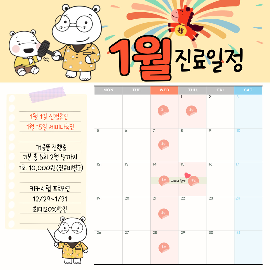 12/31, 1/1, 1/15 휴진이니 참고해주세요