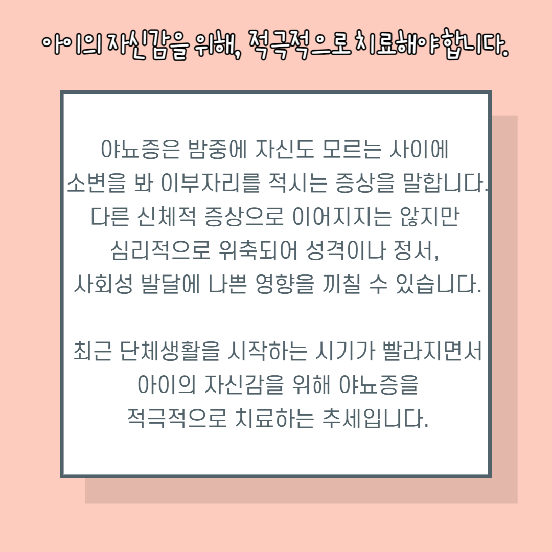 [노원함소아] 야뇨증 함소아와 함께 아이의 자신감을 찾아주세요 노원함소아 야뇨 치료 프로그램 * 맞춤한약, 시럽한약 등은 한의사의 진단 후 처방이 필요합니다. * 치료 프로그램은 개인 체질에 따라 부작용이 발생할 수 있으니 주치의 한의사 진료 및 상담 후 진행이 필요합니다. 진료과목 2024.04.22