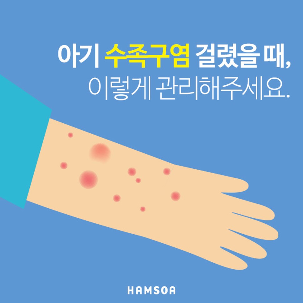 안녕하세요 함소아한의원 노원점입니다. ^^ 더위가 시작되며 우리 아이들을 괴롭히는 여름 질환들이 다가오고 있습니다. 그중 어린이집, 유치원을 다니는 우리 아이가 심하고, 대비해야 할 질환이 있습니다. 바로 '수족구염' 입니다! 한 번만 겪어도 열이 나고, 입맛이 뚝 떨어져 부모님들이 많이 걱정하는 유행 질환 중 하나입니다. 오늘은 수족구염에 대해 이야기 해보려고 합니다. #1.수족구염은 무엇일까요? 수족구염은 일반 감기같이 바이러스가 원인이 되어 손, 발, 입에 발진이 생기는 전염성 질환입니다. 주로 장에 서식하는 장 바이러스가 원인이 됩니다. 유행하는 바이러스가 조금씩 다르고, 한 번에 여러 가지 바이러스가 유행하는 경우도 종종 있기 때문에 매년 유행하는 수족구염의 증상과 양상이 다양하게 나타나고 있습..
