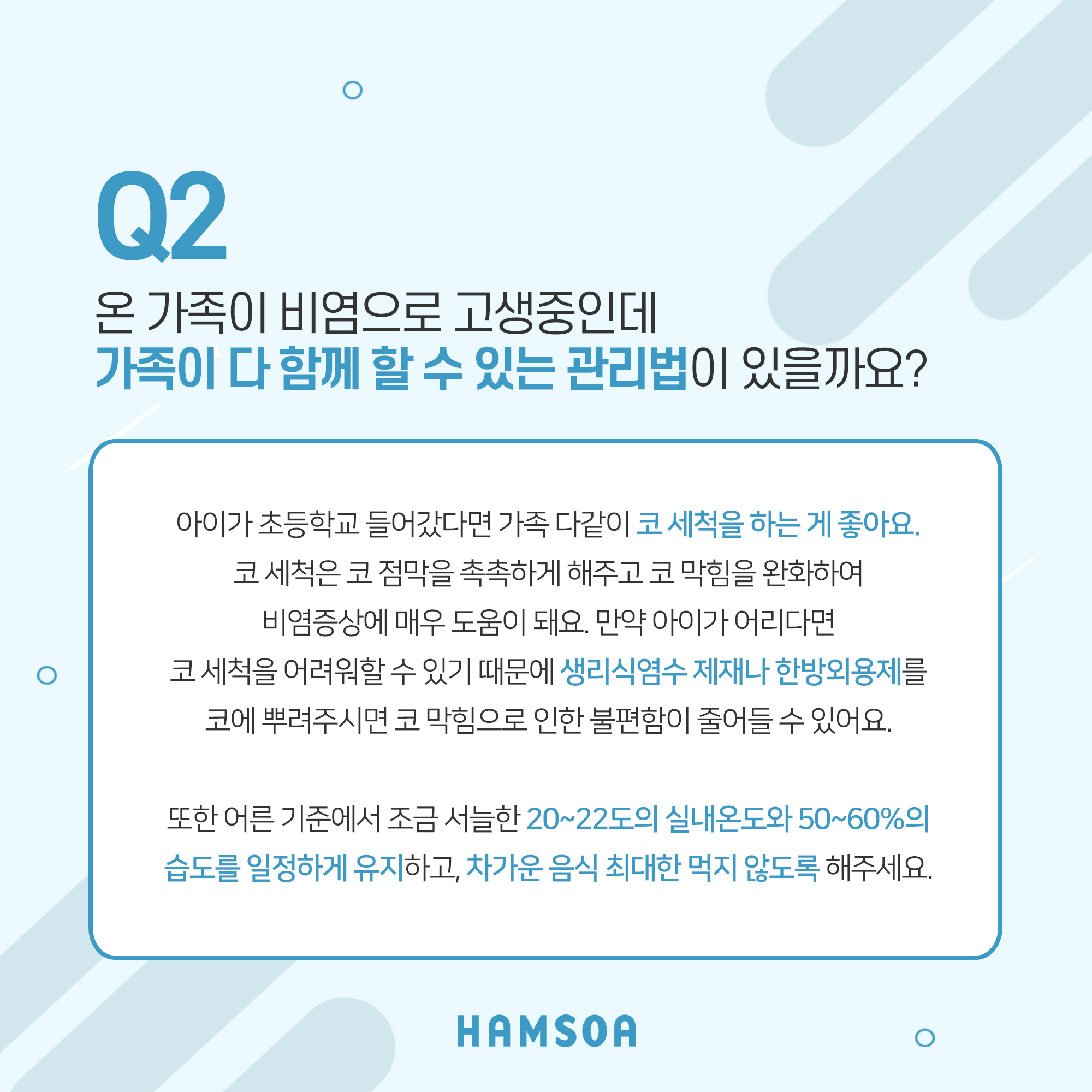Q2. 온 가족이 비염으로 고생 중인데 가족이 다 함께 할 수 있는 관리법이 있을까요?