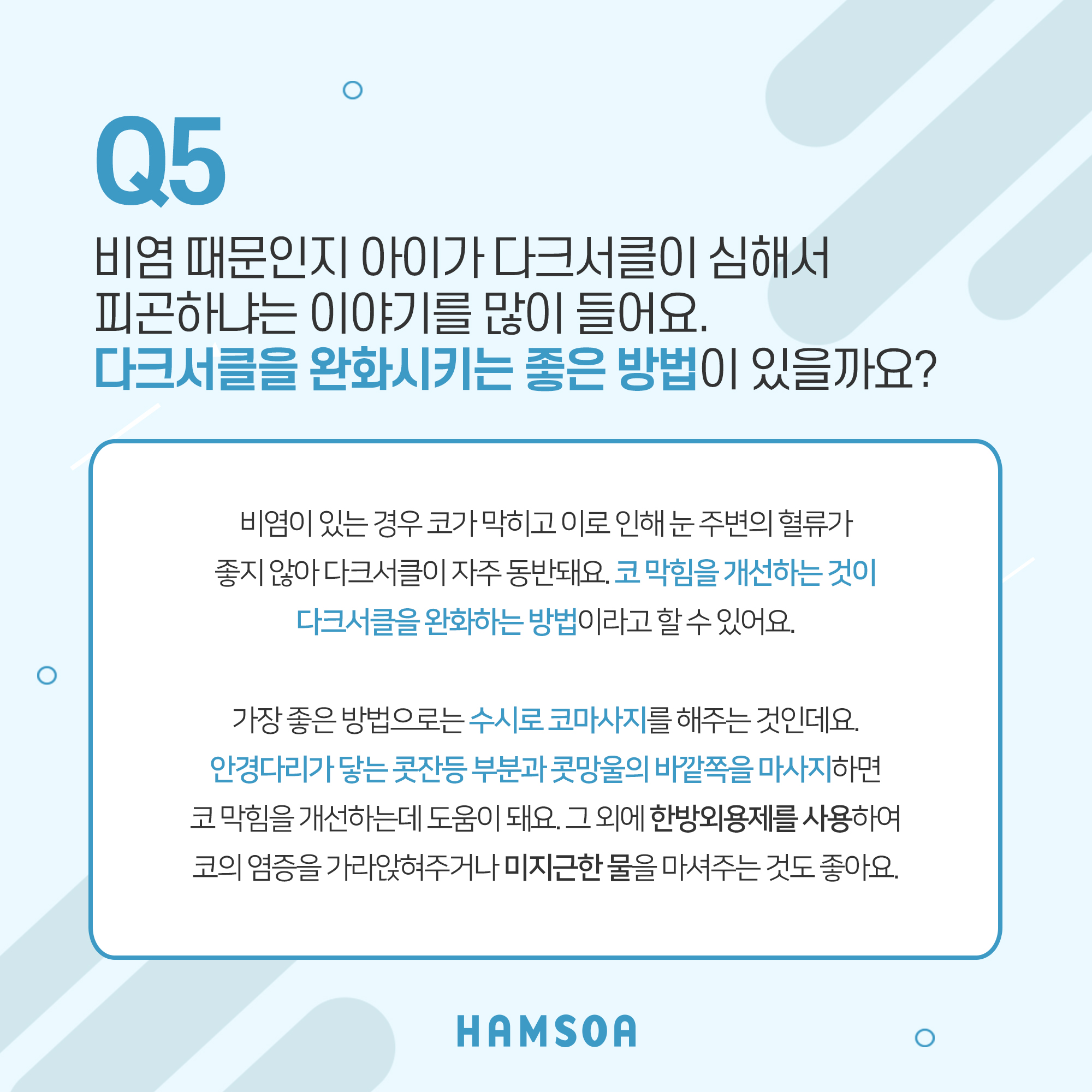 Q5. 비염 때문인지 다크서클이 심해서 아이가 피곤하냐는 이야기도 많이 들어요.