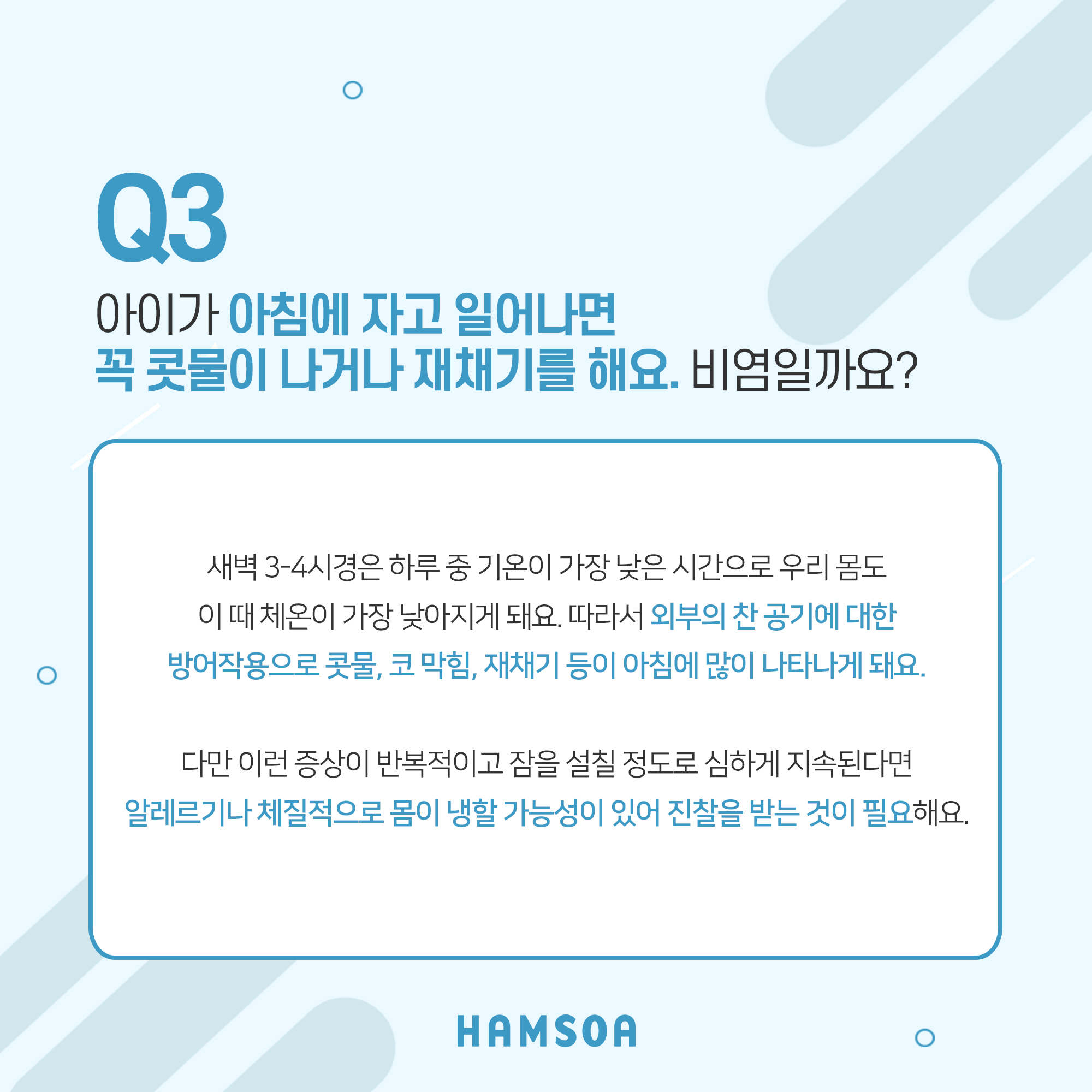 Q3. 아이가 아침에 자고 일어나면 꼭 콧물이 나거나 재채기를 해요.