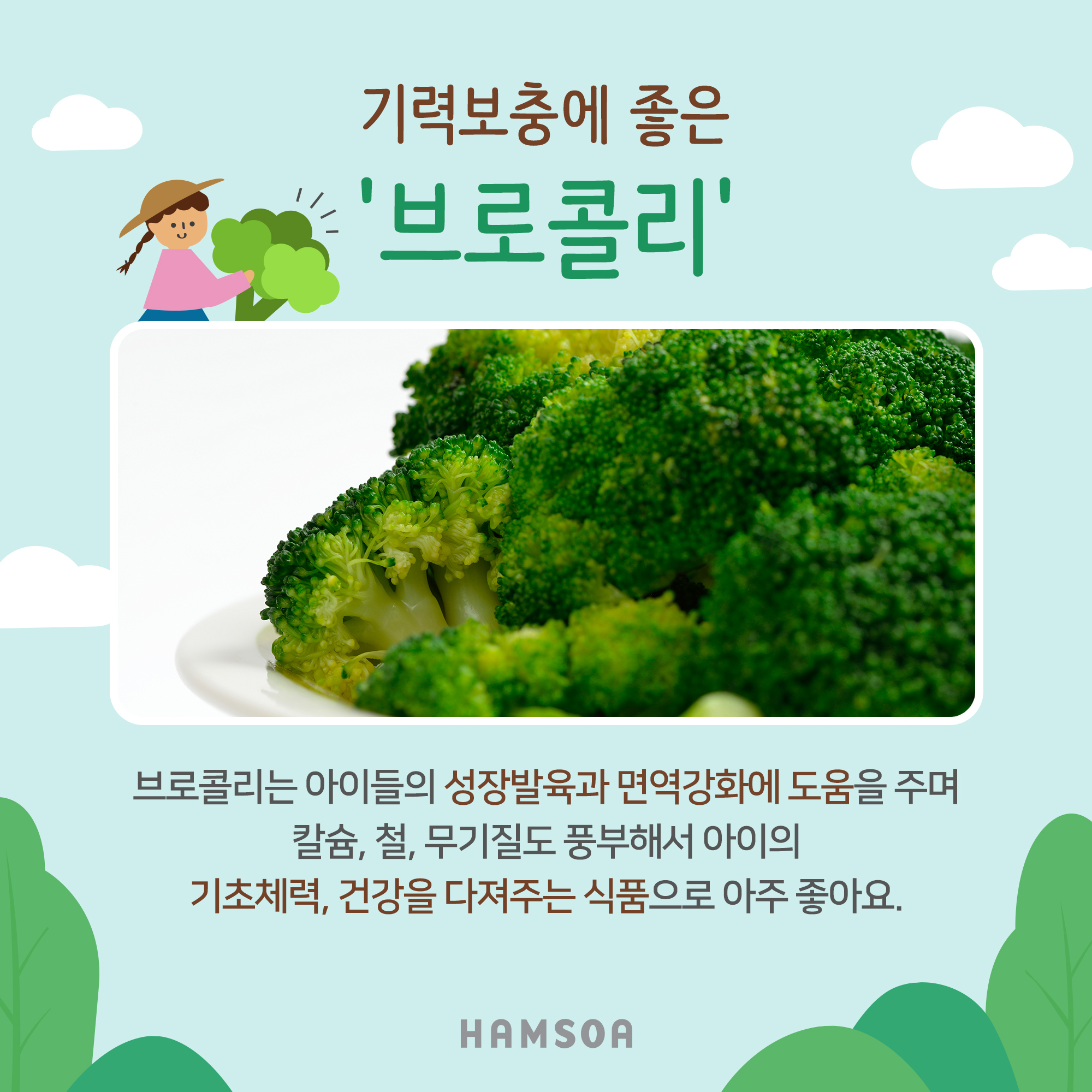 브로콜리는 아이들의 성장발육과 면역강화에 도움을 주며