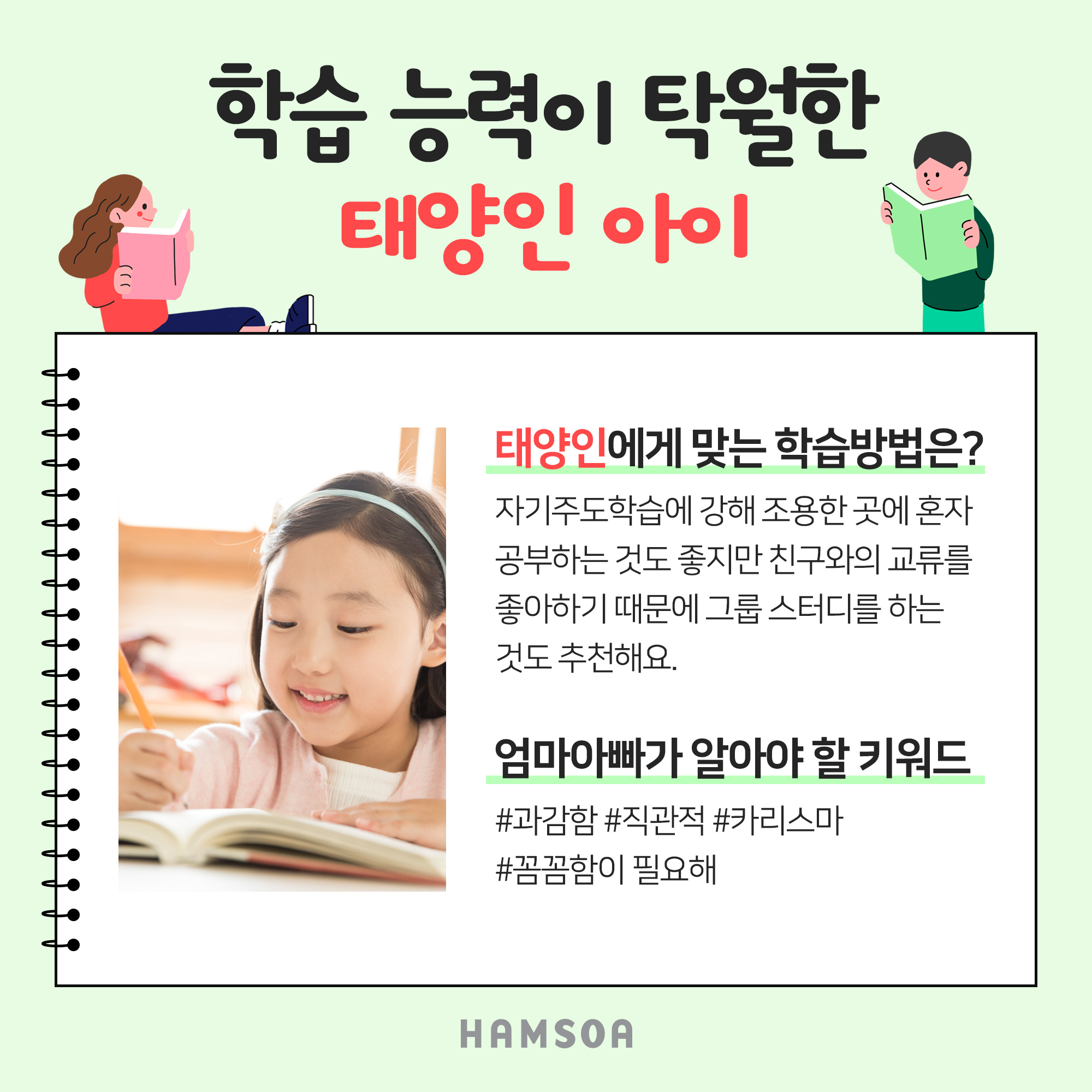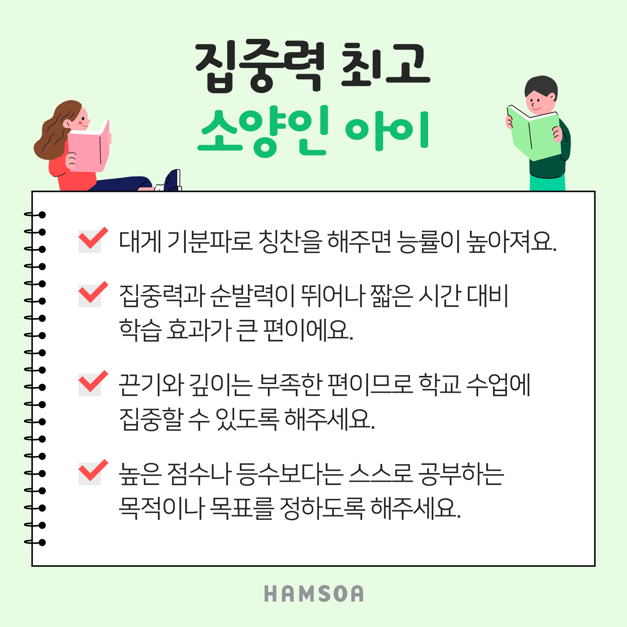 - 집중력과 순발력이 뛰어나 짧은 시간 대비 학습효과가 큰 편입니다.