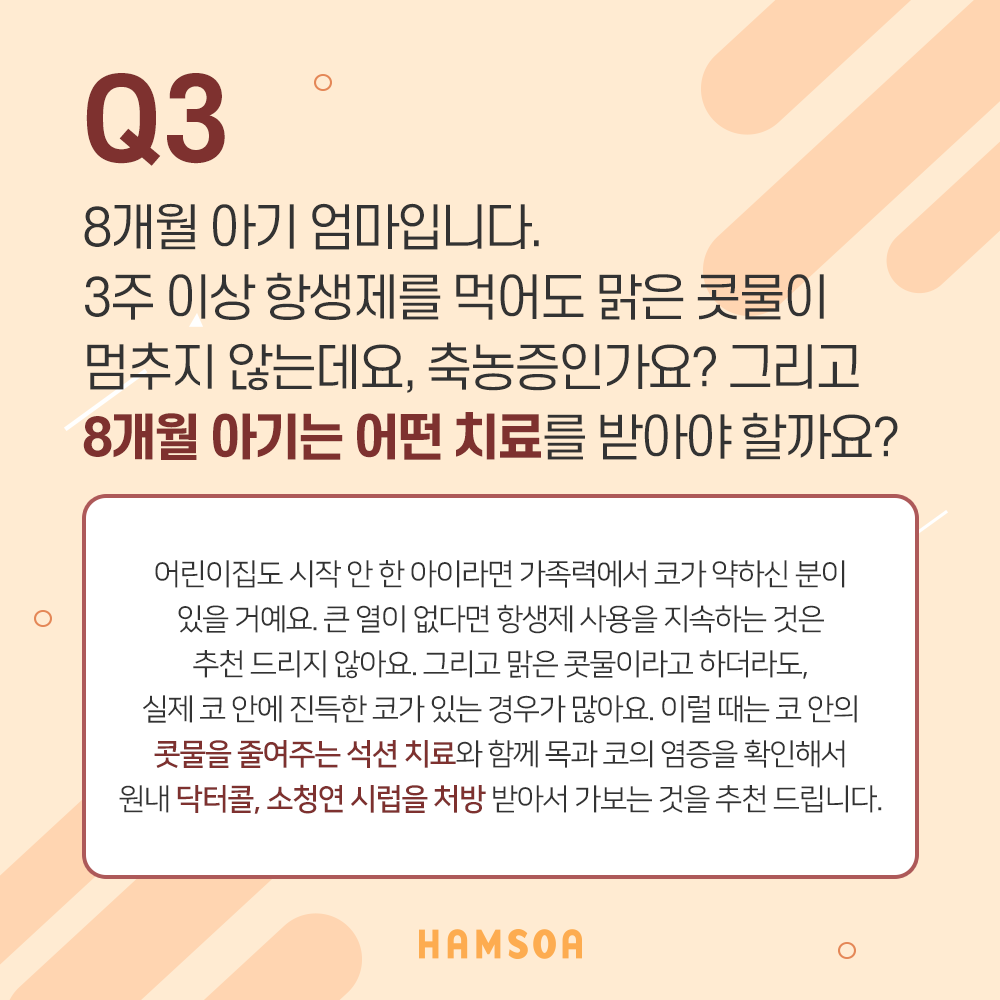 Q3. 8개월 아기 엄마입니다. 3주 이상 항생제를 먹어도