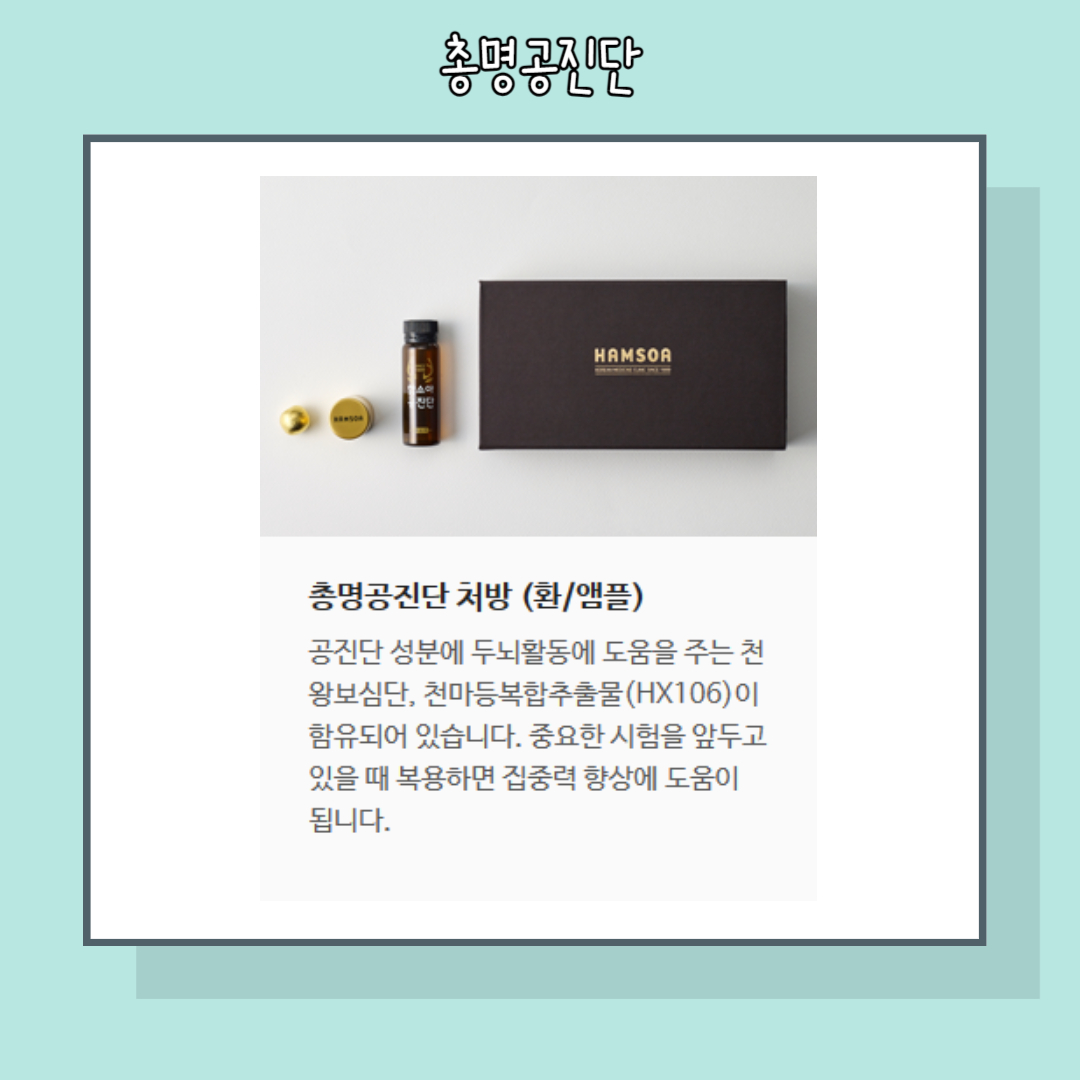 * 공진단,총명공진단 등은 한의사의 진단 후 처방이 필요합니다.